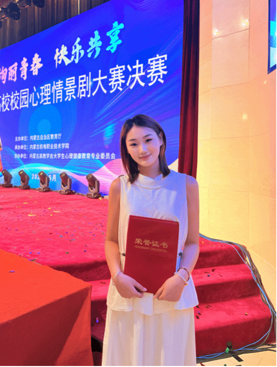 她荣获中国国际大学生创新大赛校赛一等奖、“挑战杯”校赛金奖等多项奖励;其作品《找自己——光环的背后》荣获全区高校校园心理情景剧大赛二等奖,乌兰察布市科普剧展演三等奖。