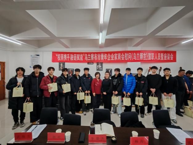 1月6日,“校商携手 融链赋能”乌兰察布市青年企业家商会慰问《乌兰额吉》演职人员暨座谈会在集宁师范学院音乐与舞蹈学院举行。校党委副书记李景杰出席并讲话。党委委员、宣传部部长郭英,青商会监事长杨海、秘书长张乙飞、常务副会长金海龙、副会长孙金庆等20余位企业家出席活动。音乐与舞蹈学院党总支书记武俊芳主持活动,音乐与舞蹈学院班子成员及该剧全体演职人员参加活动。