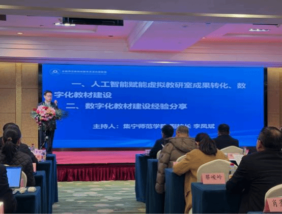 本次会议的核心是“人工智能赋能教育,协同共建虚拟教研室”,作为联盟高校代表,集宁师范学院深度参与会议全程。李凤斌主持了“人工智能赋能虚拟教研室成果转化”主题分享环节;在虚拟教研室申请牵头单位环节,教育科学学院院长赵晓英围绕我校教育教学特色与虚拟教研室建设规划作了专题分享。